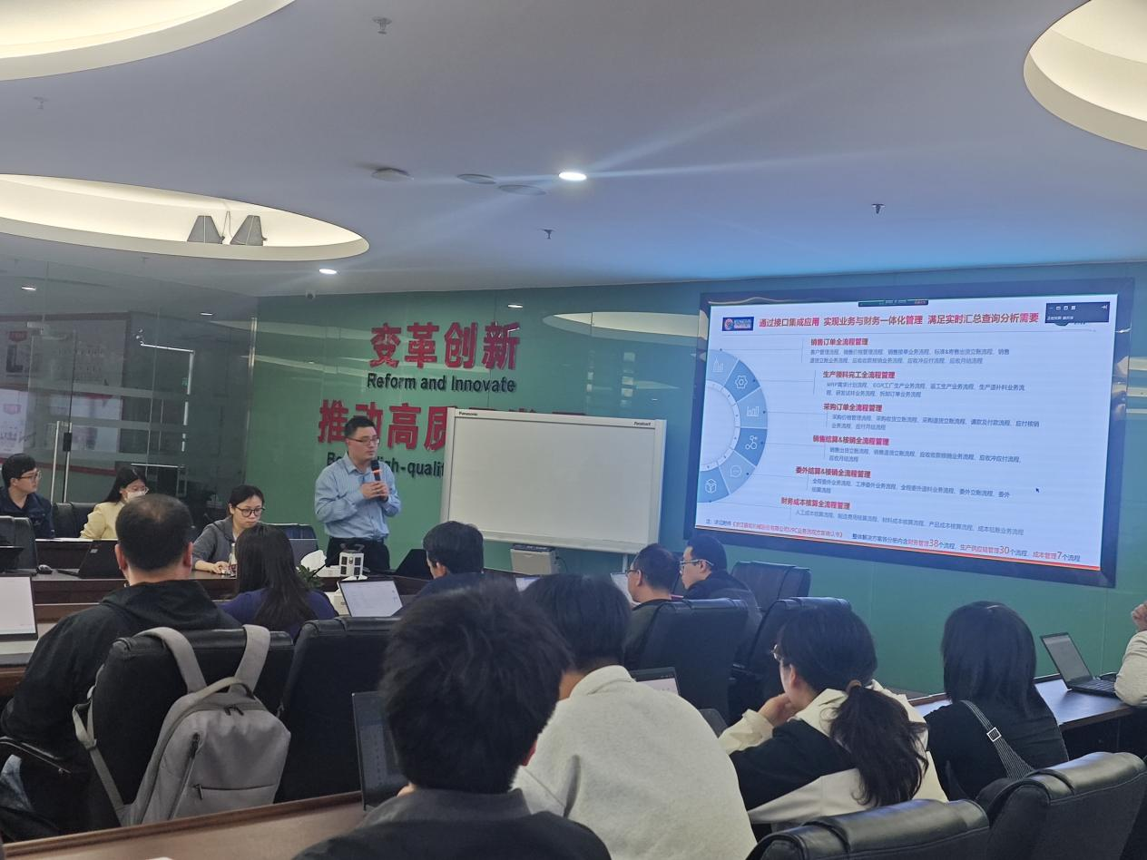 隨后,生產、供應鏈、財務三個小組分別就各自領域的藍圖設計成果進行了匯報。整體匯報涵蓋了生產制造、供應鏈管理與財務管理三大核心模塊,系統總結了標準數據建設、流程精細化梳理、關鍵系統接口與表單開發清單、智能分析與報表體系建設等核心內容。